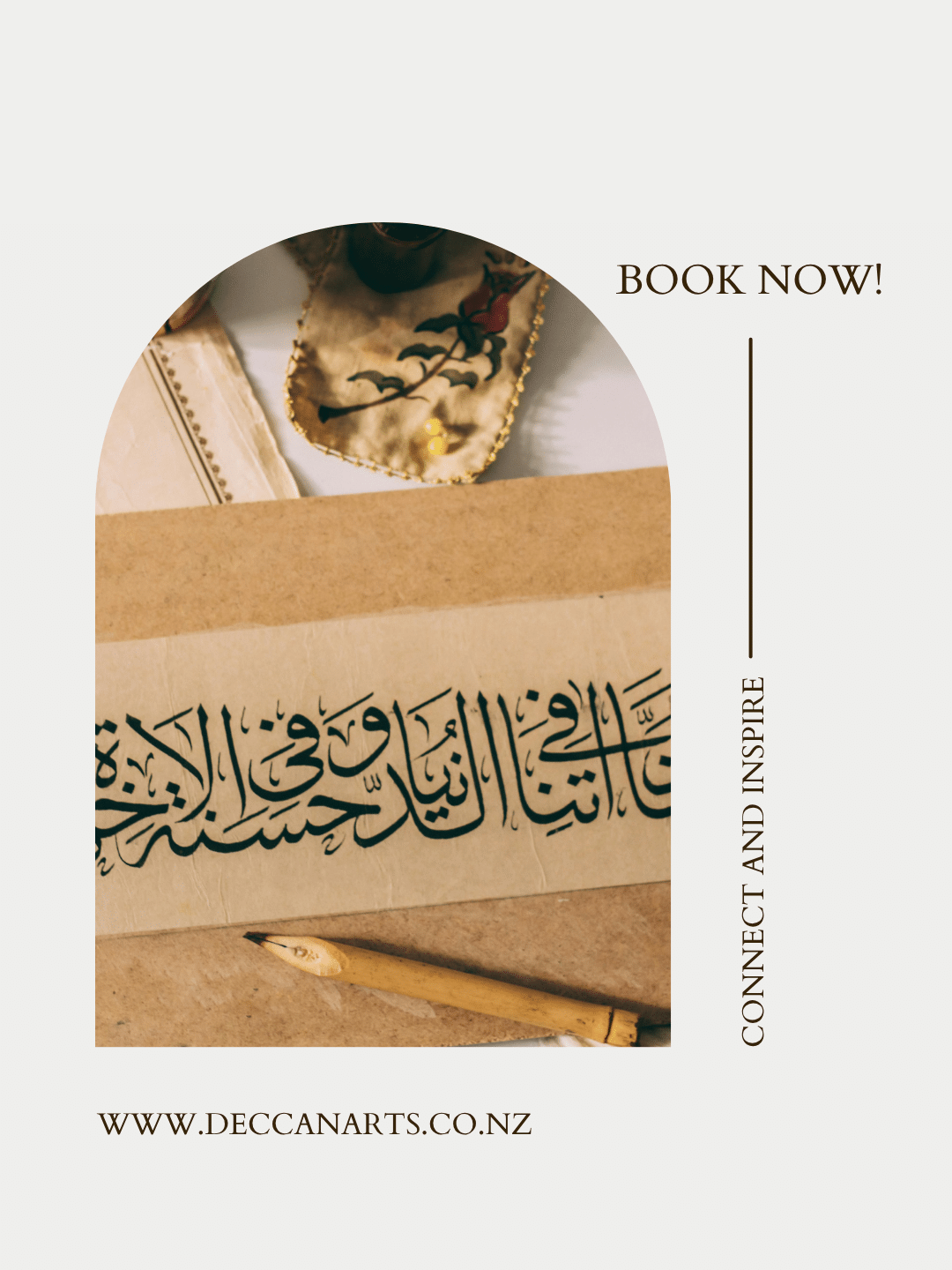 Join us at the Deccan Arts booth for an immersive Arabic calligraphy experience at the NZ Halal Show 2025. Our guided workshops offer a hands-on introduction to the timeless art of calligraphy — perfect for beginners and art enthusiasts alike.